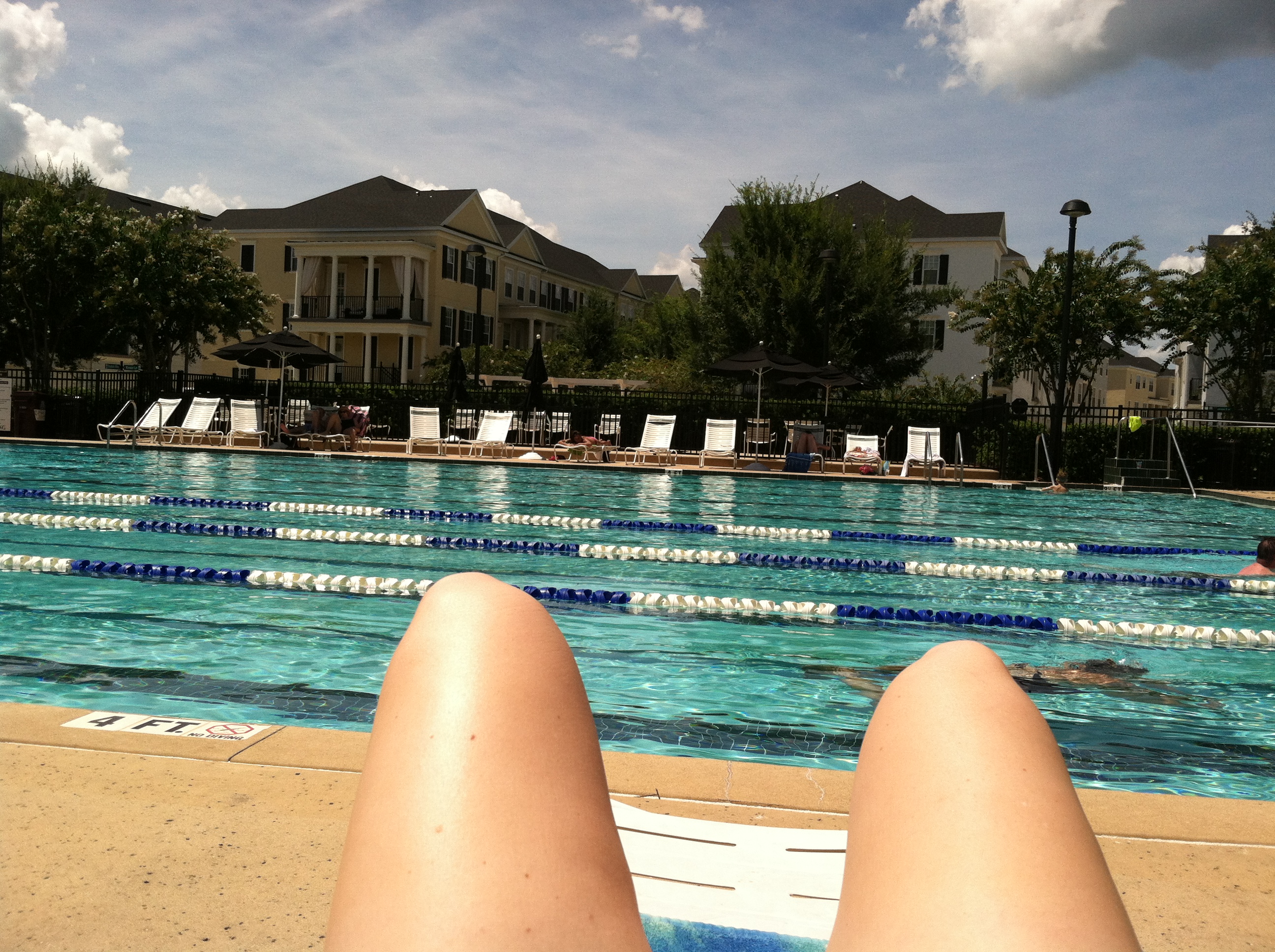I didn’t work out at ALL on Saturday, unless you count laying out by the pool with a book as an intensive yoga session.