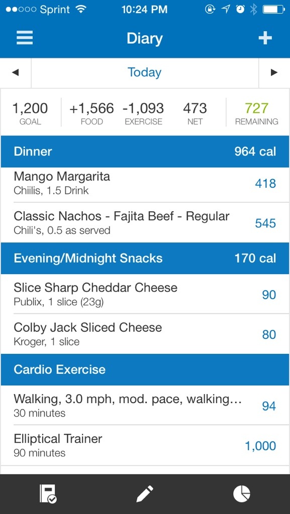 I had a bit of a cheat meal for dinner (it wasn’t my plan, but I succumbed to peer pressure), so that negated some of my efforts. Still, though, I’m pretty happy with how the day turned out.