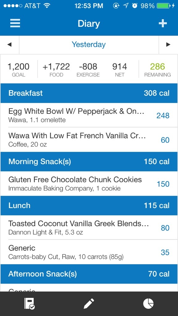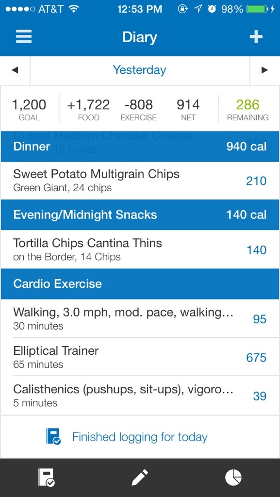 I totally crashed last night and forgot to post my nutrition/fitness journal for the day. Ha!
