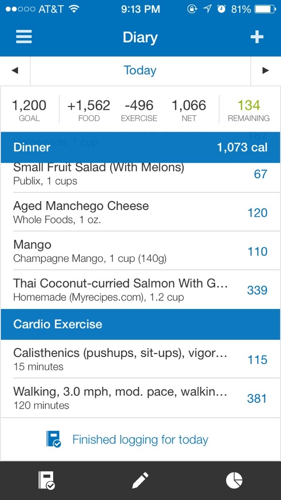 Sunday was a work day, and so I was never able to sneak in a full workout. Fortunately, I got a 30 minute walk in beforehand, took FOUR quick walk breaks during the day, and got a long walk in after dinner.