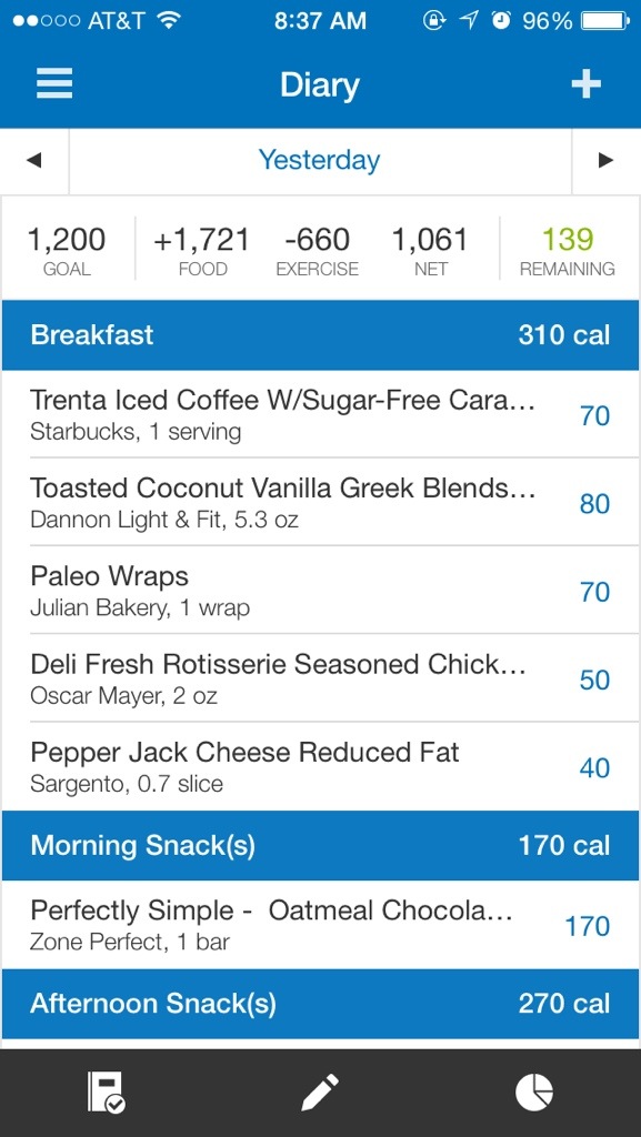 I’m gonna have to give those a shot! I use MyDietDiary, but I tend to lose interest after a short while. I’m one of those who has to be forced to work out!