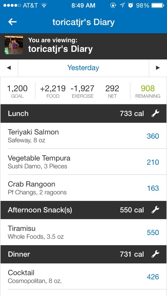 The tiramisu (and lunch!) were killers, so I really hit the gym hard. My liquid dinner wasn’t the healthiest, but it definitely made for a fun night.