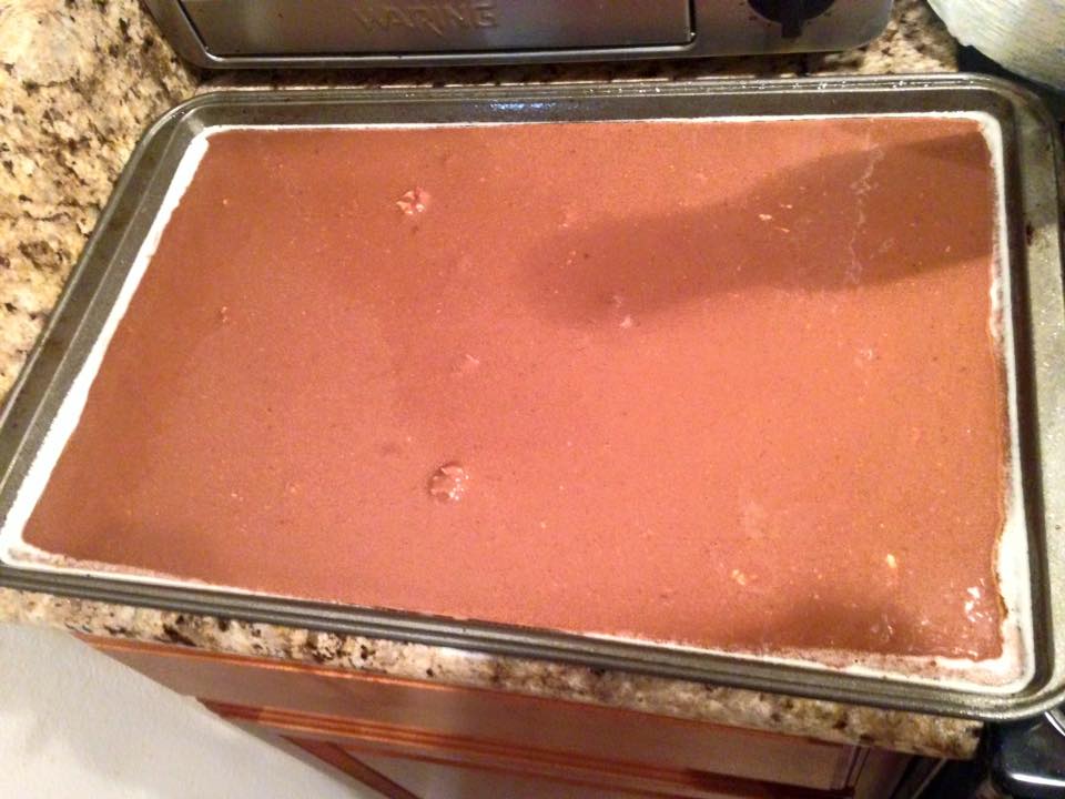 Preheat your oven to 350 degrees, and spray your pan (use a brownie dish for THICK, moist brownies, or a COOKIE SHEET for thin, crispier brownies – my preference) well to ensure nothing sticks.