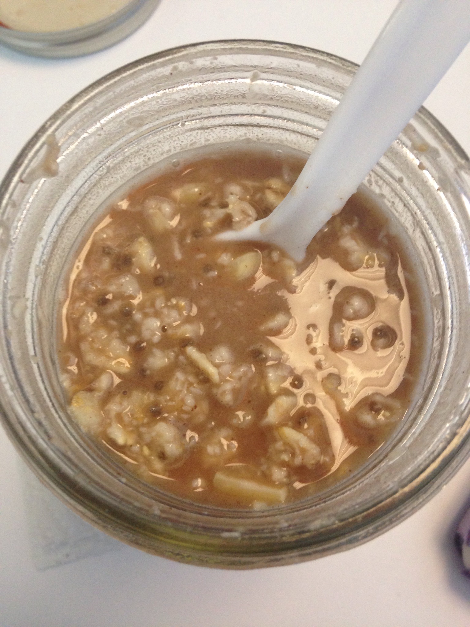 These things are amazing. Instead of eating them cold (as overnight oats), I’ve nuked them for about three minutes and they turn into this warm, almost oatmeal-cookie esque bread pudding that’s to die for.